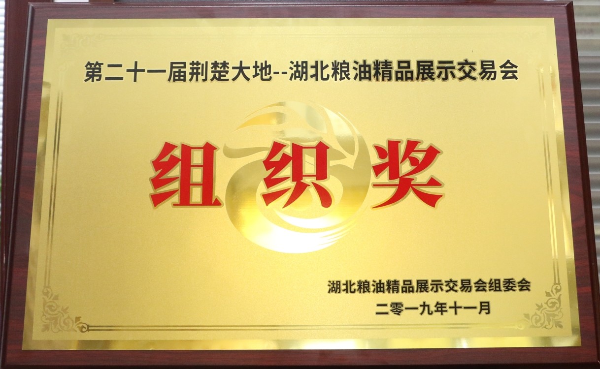 2019年榮獲第二十一屆荊楚大地--湖北糧油精品展示交易會組織獎