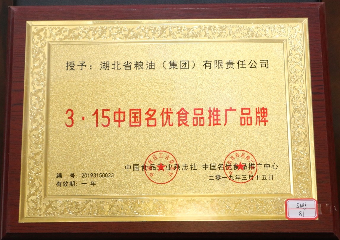 2019年榮獲湖北省進農村進社區示范工程示范加工企業、2019湖北省第七批放心糧油示范加工企業稱號