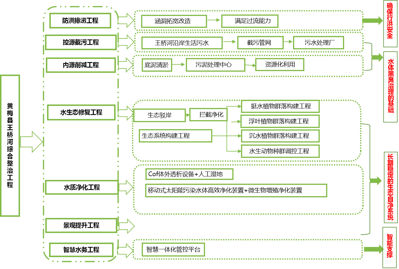 據(jù)悉,黃梅縣王橋河黑臭水體整治工程EPC總承包項目是黃梅縣十三五生態(tài)環(huán)境建設收官項目,承擔王橋河防洪排澇、生態(tài)修復以及景觀提升等多重任務。項目范圍為黃梅縣王橋河城區(qū)段至老縣河八角亭中學段河道,項目建設內容包括防洪排澇、截污納管、水生態(tài)修復、水質凈化、景觀綠化、智慧水務等。