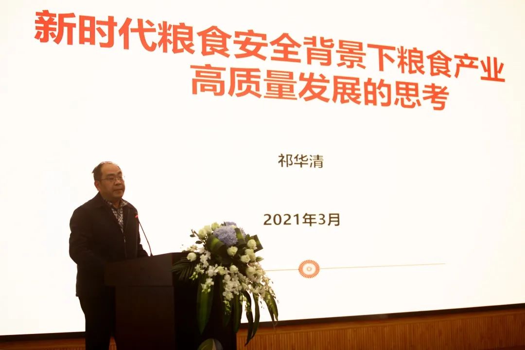 ▲武漢輕工大學湖北省糧食經濟研究中心主任、糧食和物資儲備發(fā)展戰(zhàn)略研究院院長祁華清教授作專題講座