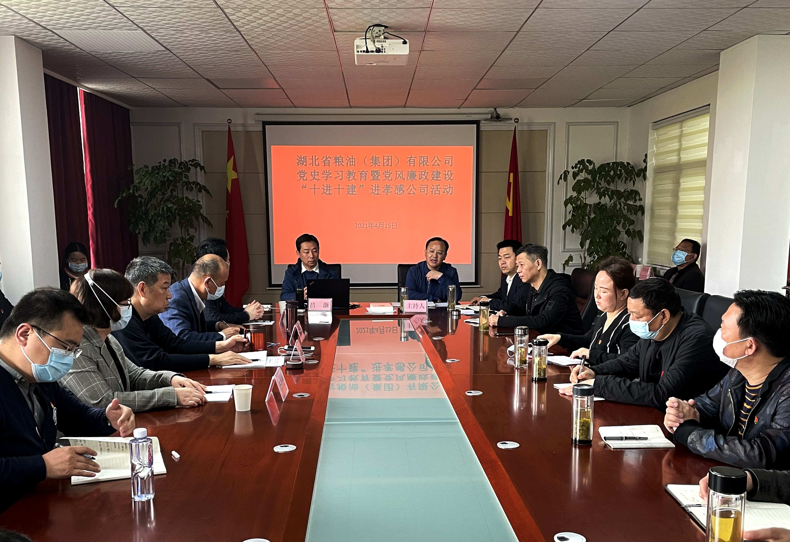 為進一步推動“清廉鄂糧”建設、“發展質量(效能)提升年”活動,切實貫徹湖北省糧油集團黨委關于黨史學習教育工作部署,4月15日,集團黨史學習教育暨黨風廉政建設“十進十建”宣教共建活動在孝感公司舉行,活動由內場會議與外場觀摩相結合,包括理論專家專題輔導、現場學習交流、發放教育書籍等環節。集團黨委委員、紀委書記代利霞,集團總法律顧問兼孝感公司黨支部書記、董事長廖雙文參加活動并講話,集團總農藝師兼孝感公司副董事長、總經理王林奎主持,集團高管胡傳楚參加活動。