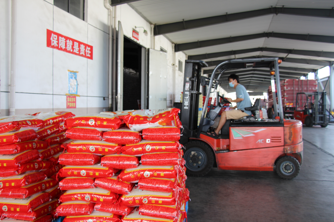 圖:康宏公司開足生產線,加班加點,日產成品大米600噸,日銷售大米400噸,有效保證糧油供應。