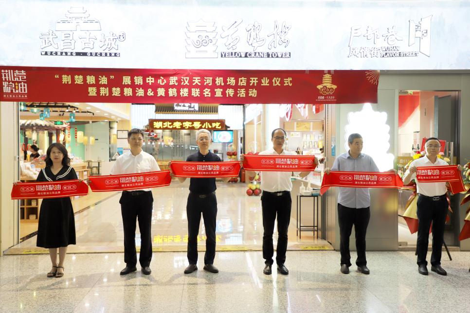 為擴大“荊楚糧油”(“湖北菜籽油”)省域公用品牌知名度和影響力,加快拓展“荊楚糧油”等省內(nèi)優(yōu)質(zhì)特色糧油產(chǎn)品品牌營銷市場,搶抓機場、高鐵、商圈等優(yōu)質(zhì)地段市場機遇,6月12日,由湖北省糧食局和省農(nóng)業(yè)農(nóng)村廳指導(dǎo),湖北省糧食行業(yè)協(xié)會和武漢市黃鶴樓公園管理處聯(lián)合主辦,湖北省糧油集團(tuán)有限公司承建的“荊楚糧油”省域糧油公用品牌武漢天河機場展銷中心開業(yè)儀式暨荊楚糧油&黃鶴樓聯(lián)名營銷宣傳活動在武漢天河機場出發(fā)廳隆重舉行。省糧食局黨組成員、副局長李碩,產(chǎn)業(yè)處處長龔偉,武漢市黃鶴樓公園管理處主任李鳴生,省糧油集團(tuán)黨委副書記、總經(jīng)理龐虎等出席門店落成儀式。