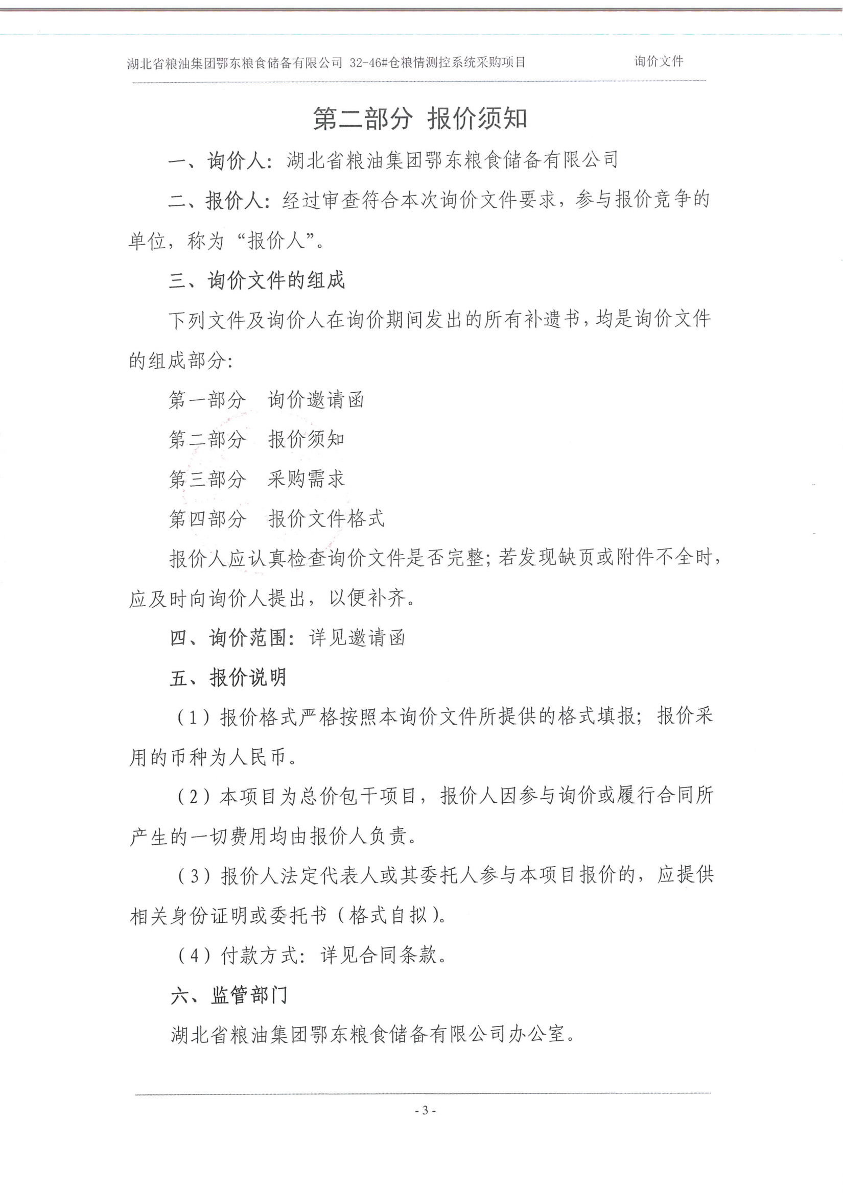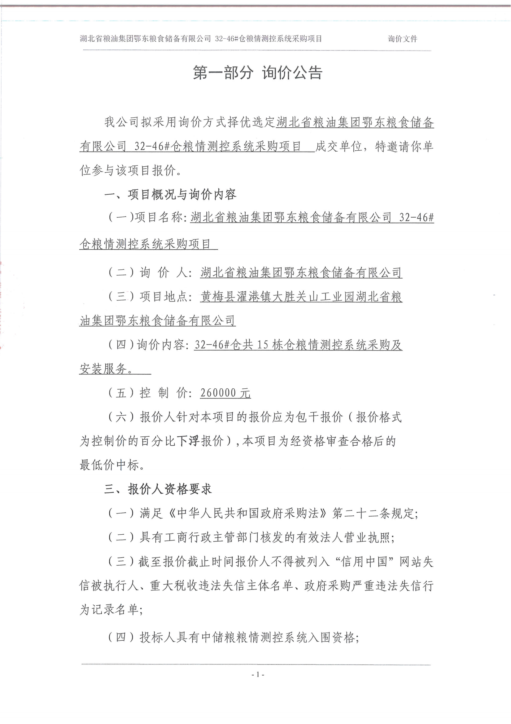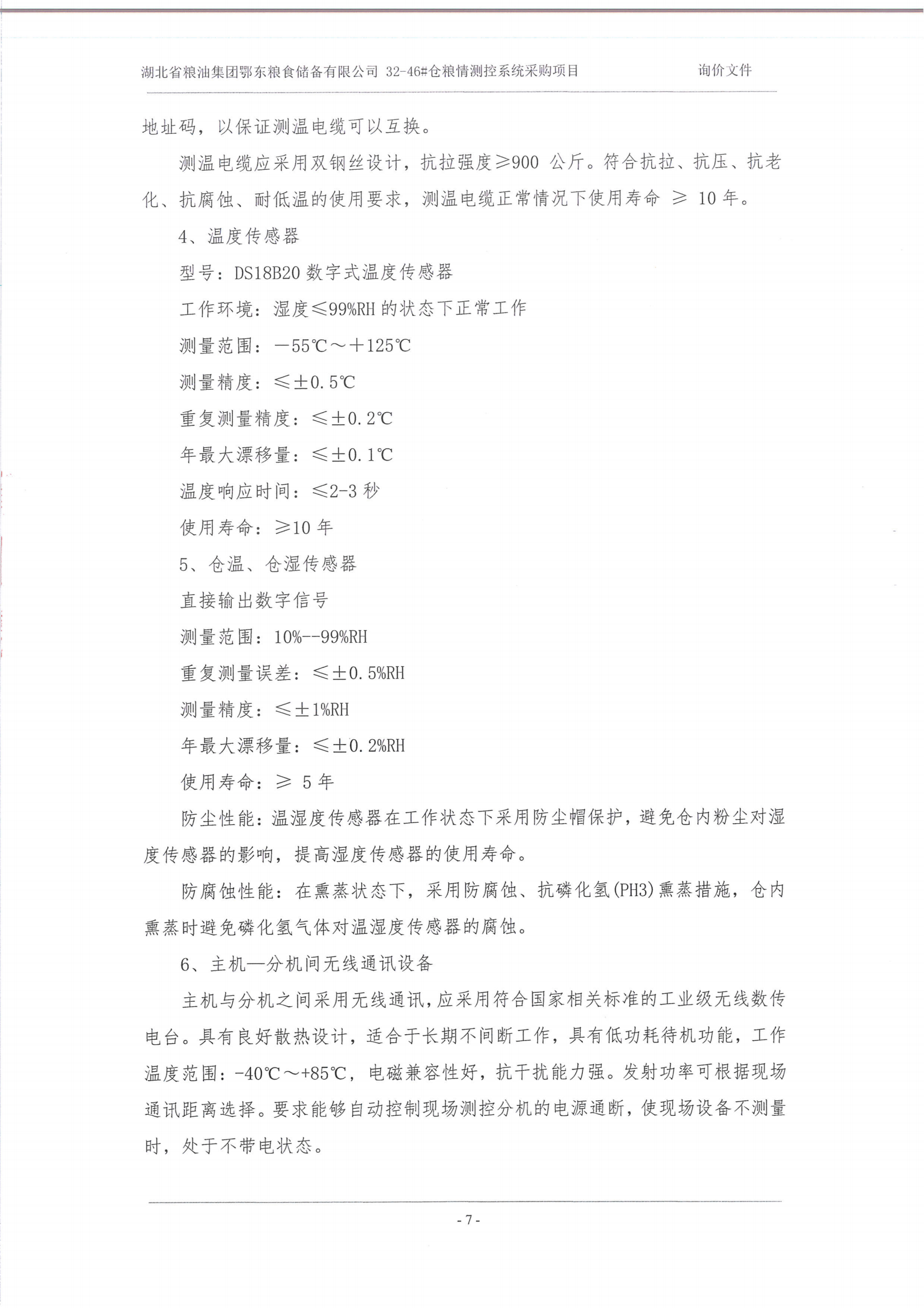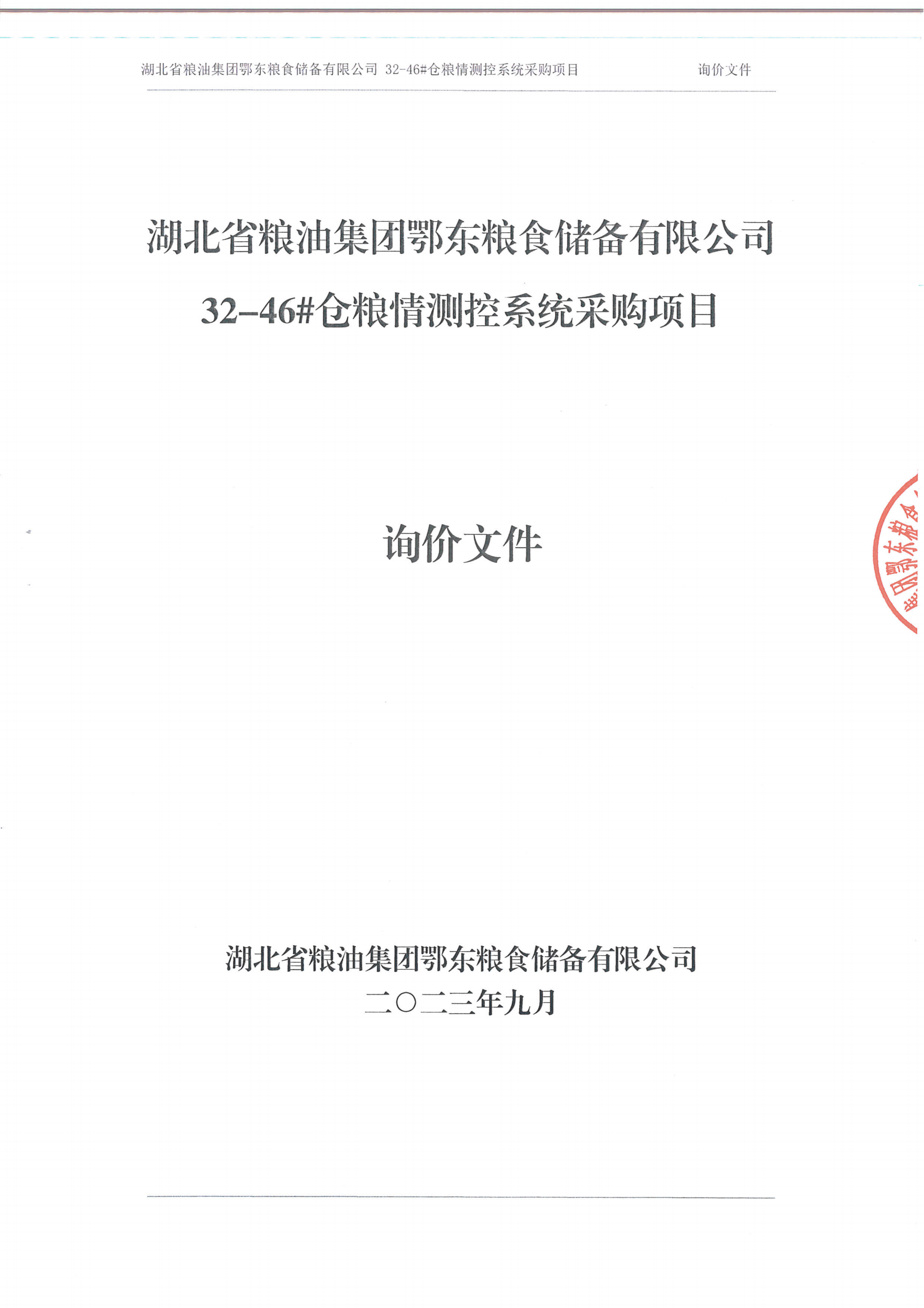 湖北省糧油集團鄂東糧食儲備有限公司32-46#倉糧情測控系統采購項目詢價文件