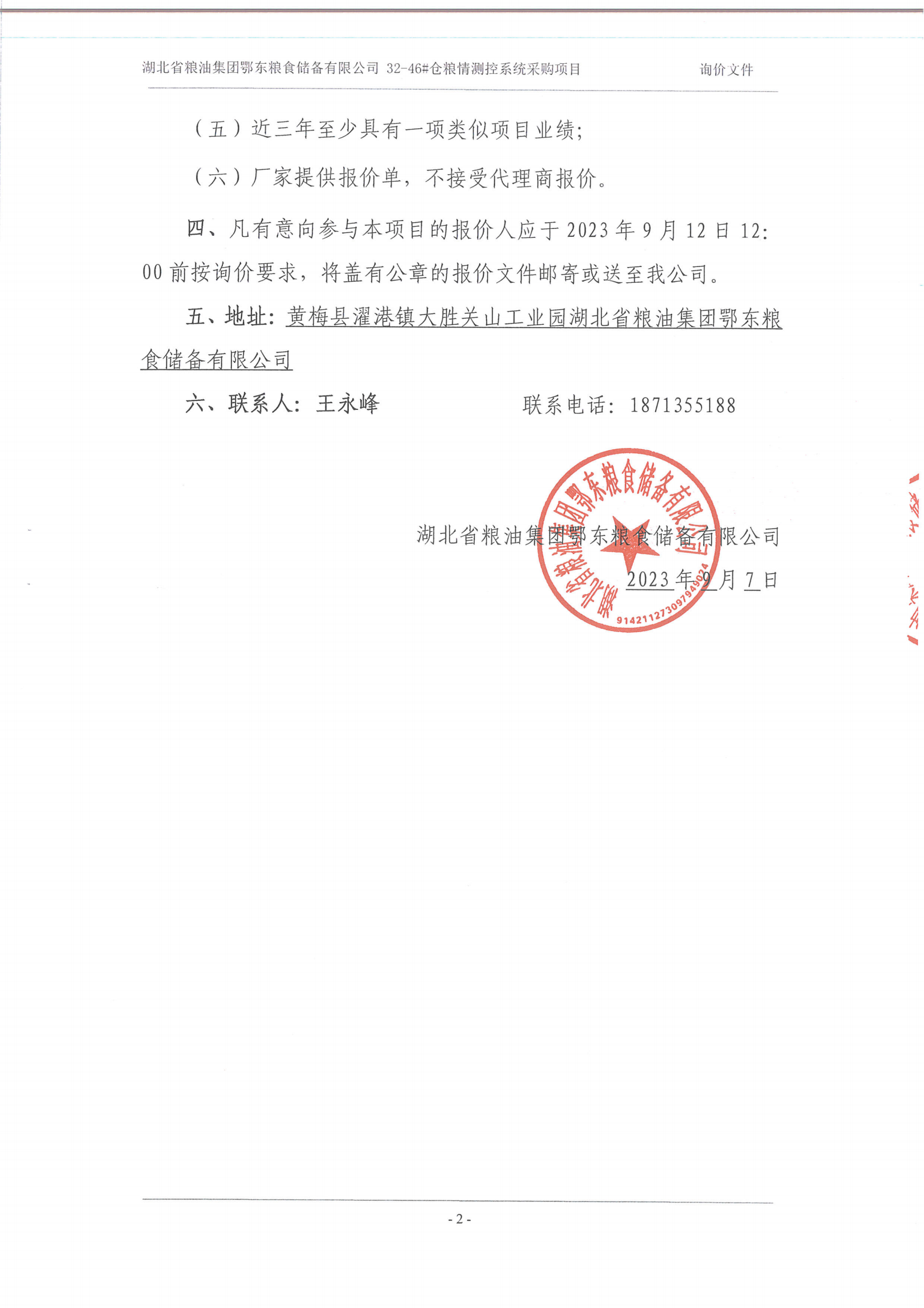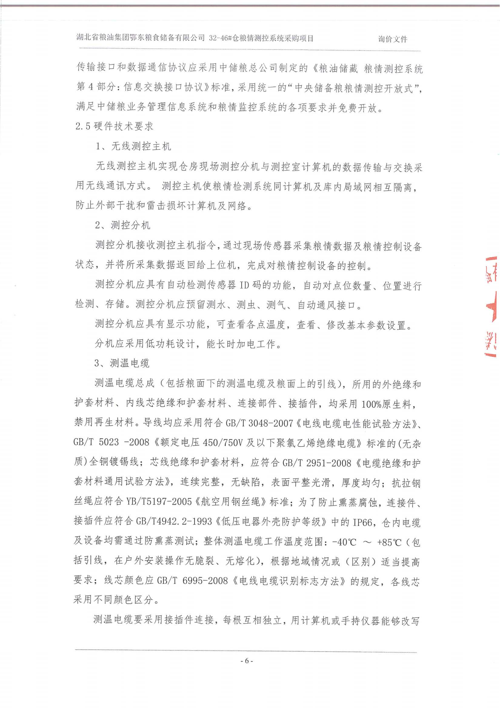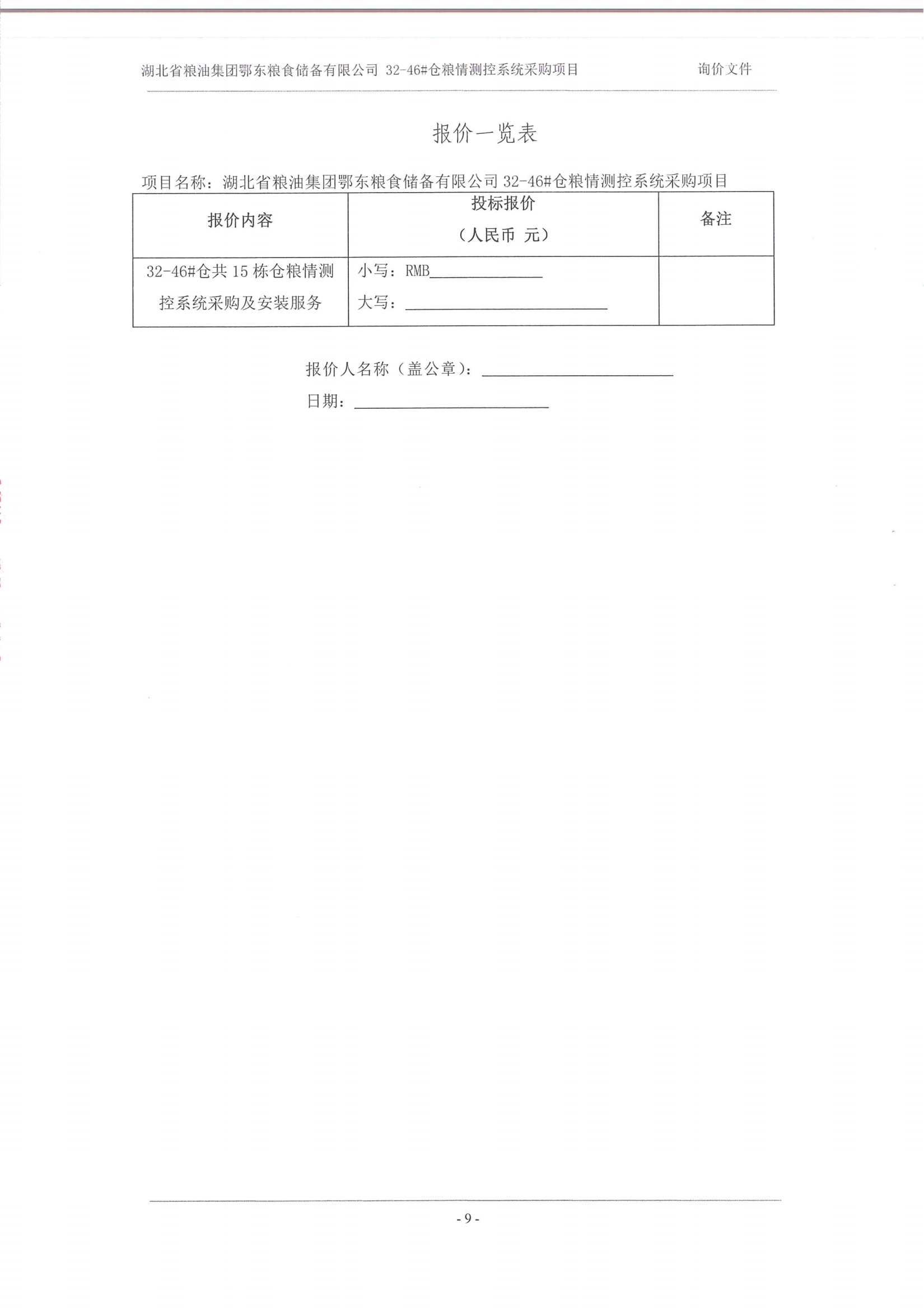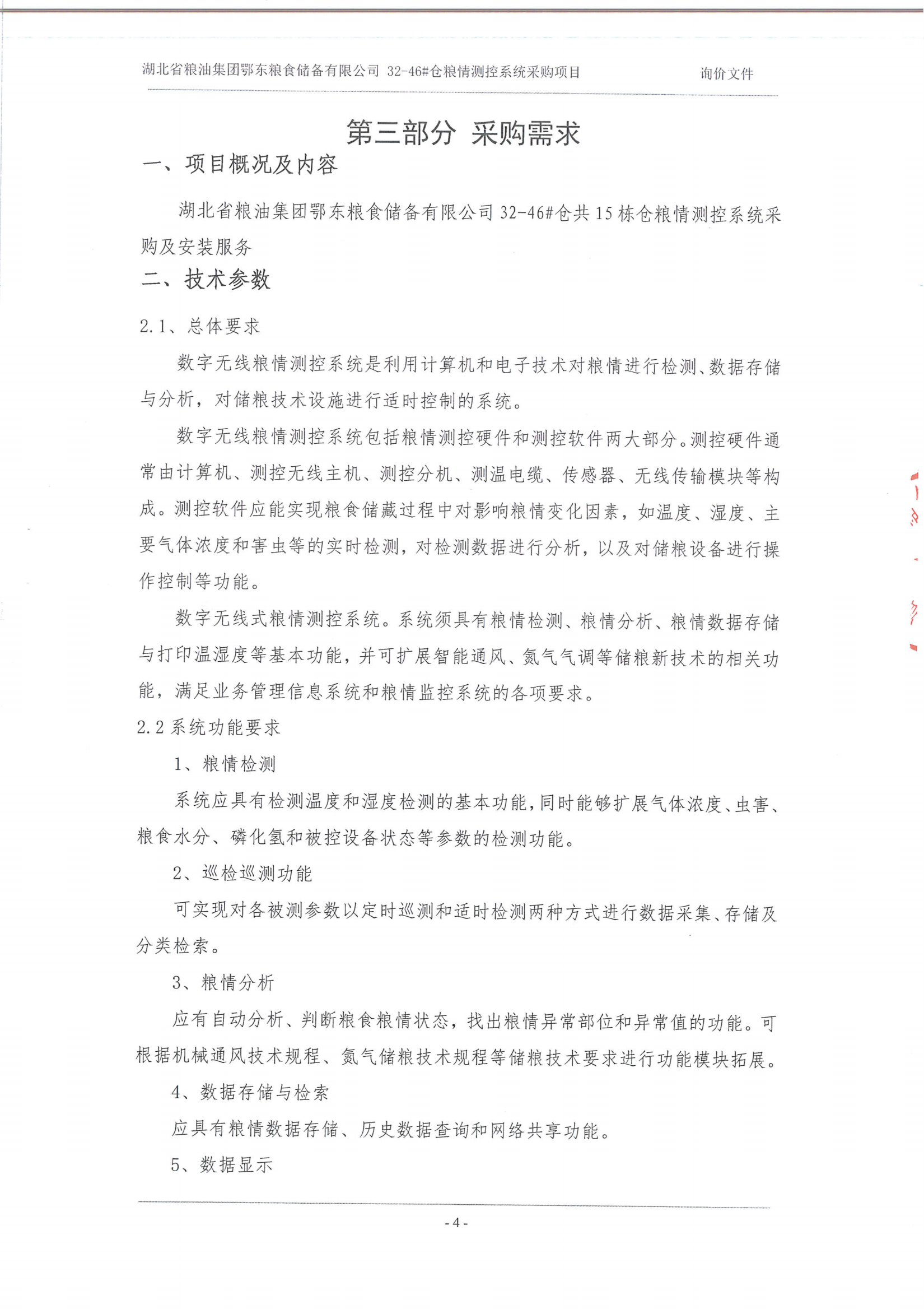 湖北省糧油集團鄂東糧食儲備有限公司32-46#倉糧情測控系統采購項目詢價文件