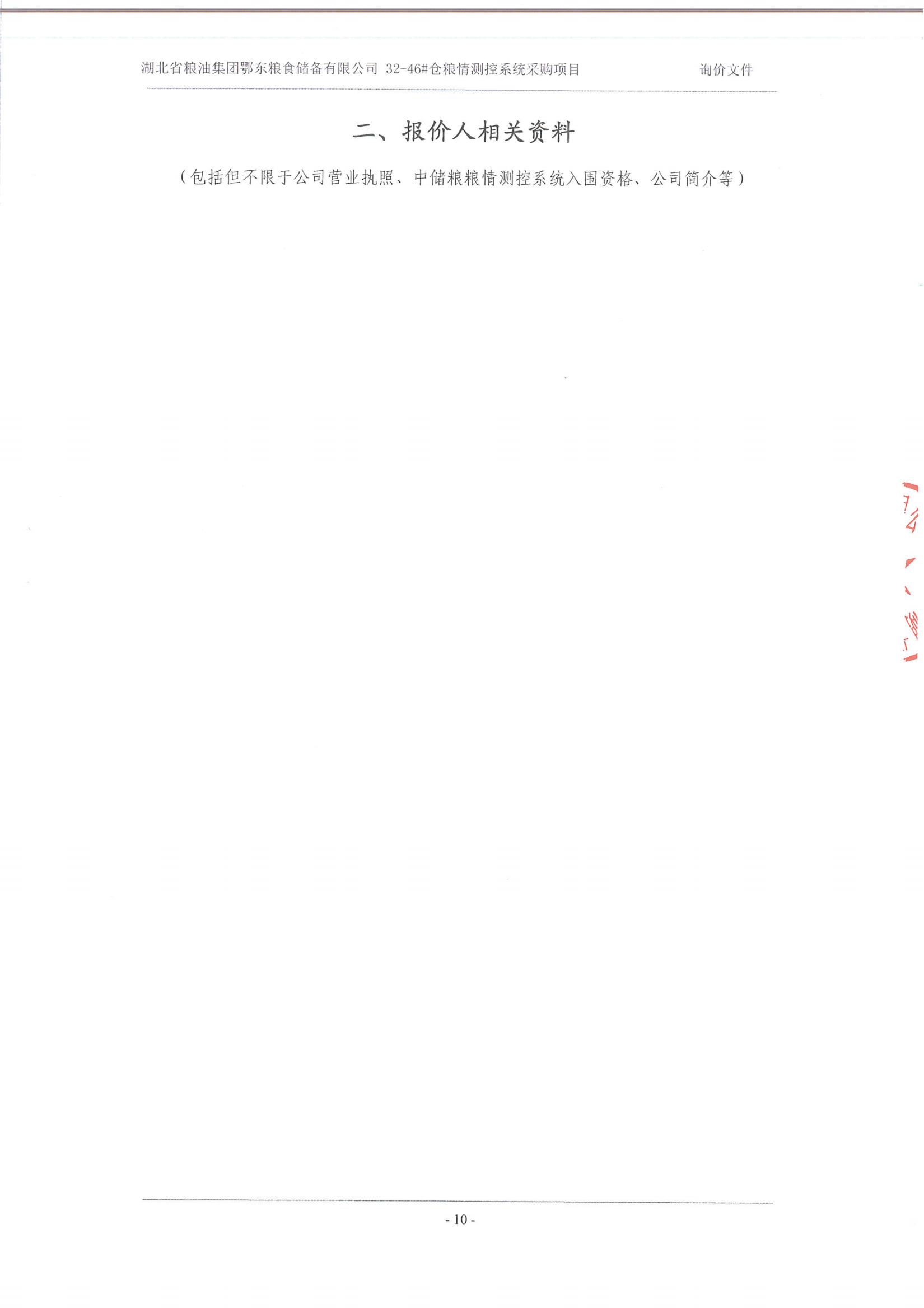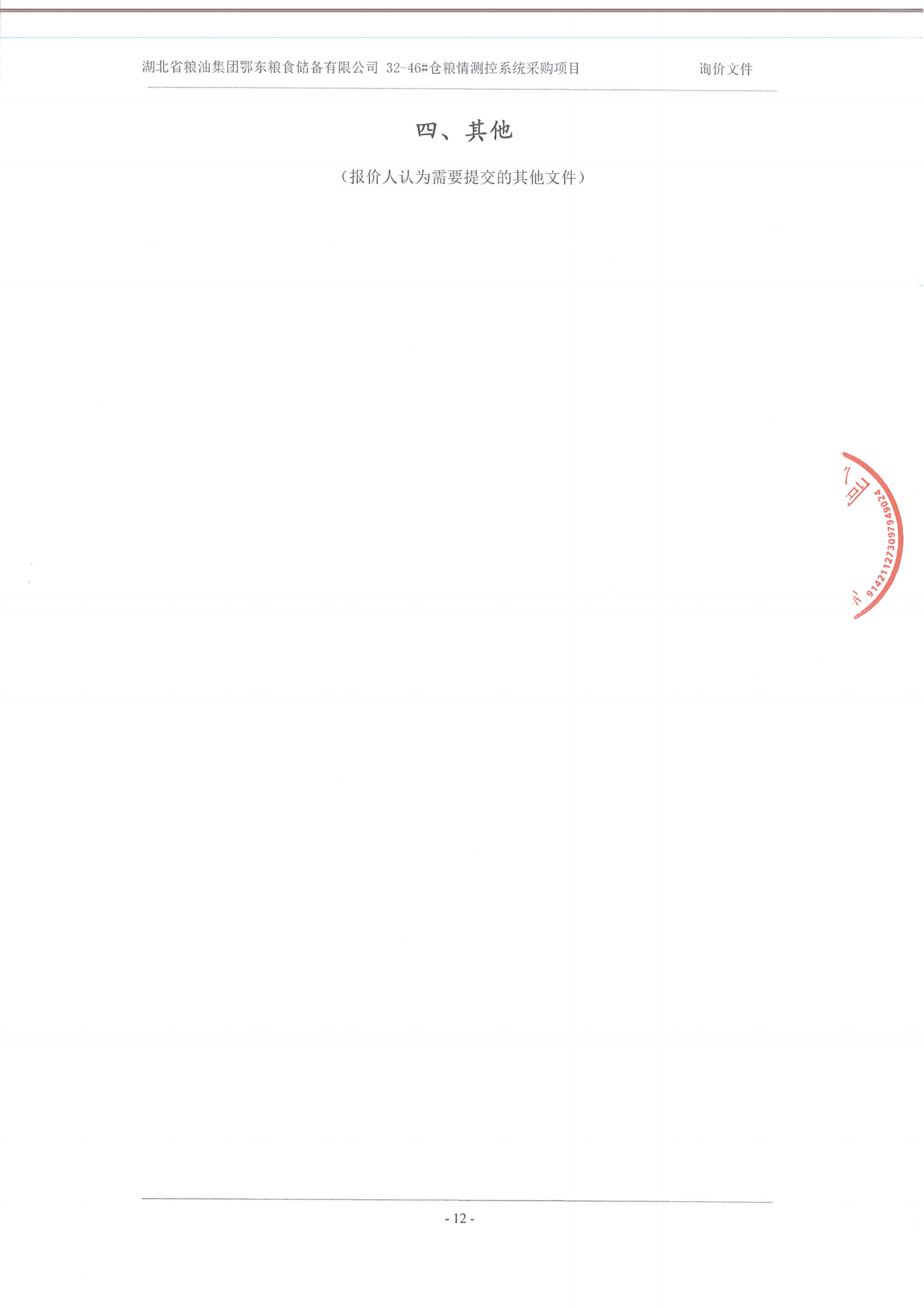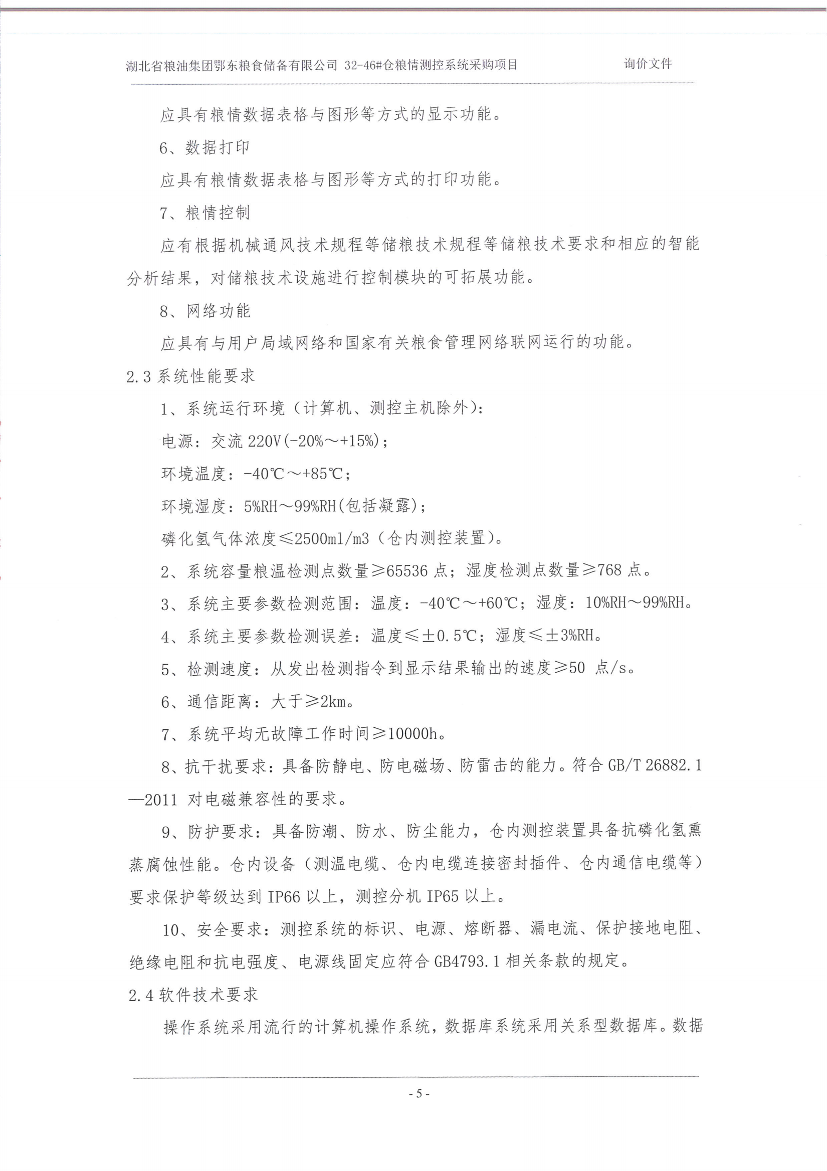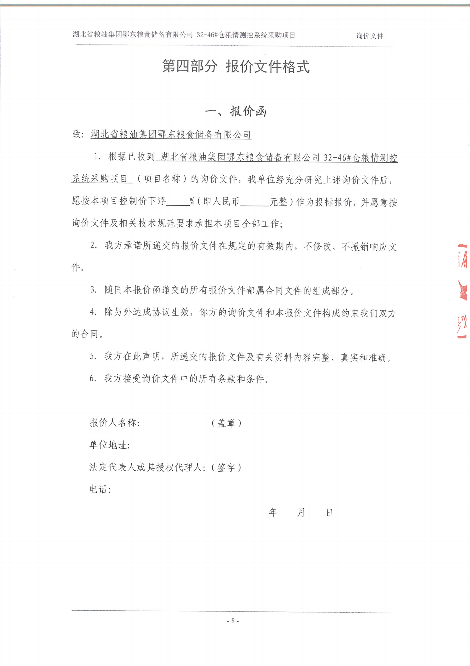 湖北省糧油集團鄂東糧食儲備有限公司32-46#倉糧情測控系統采購項目詢價文件