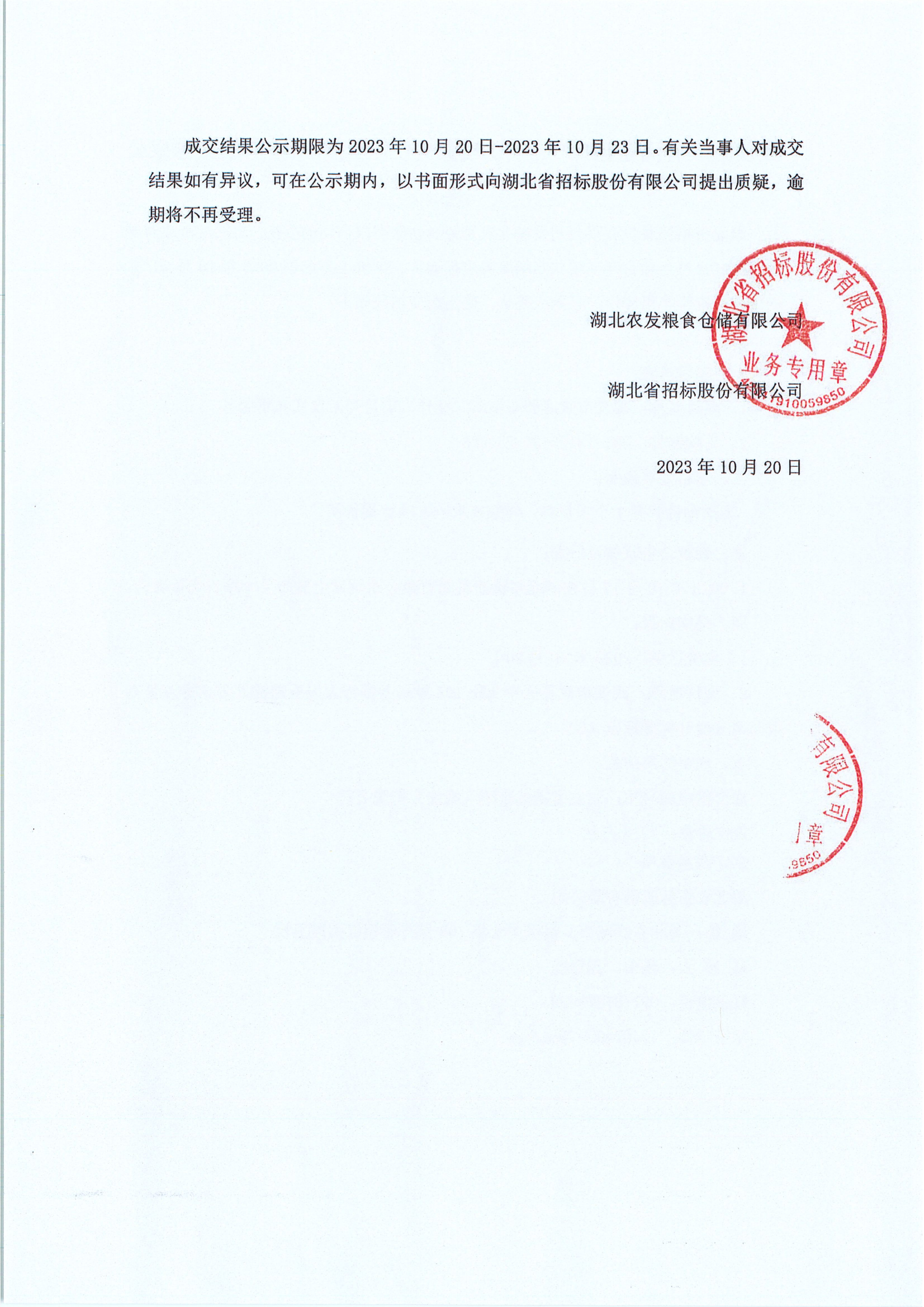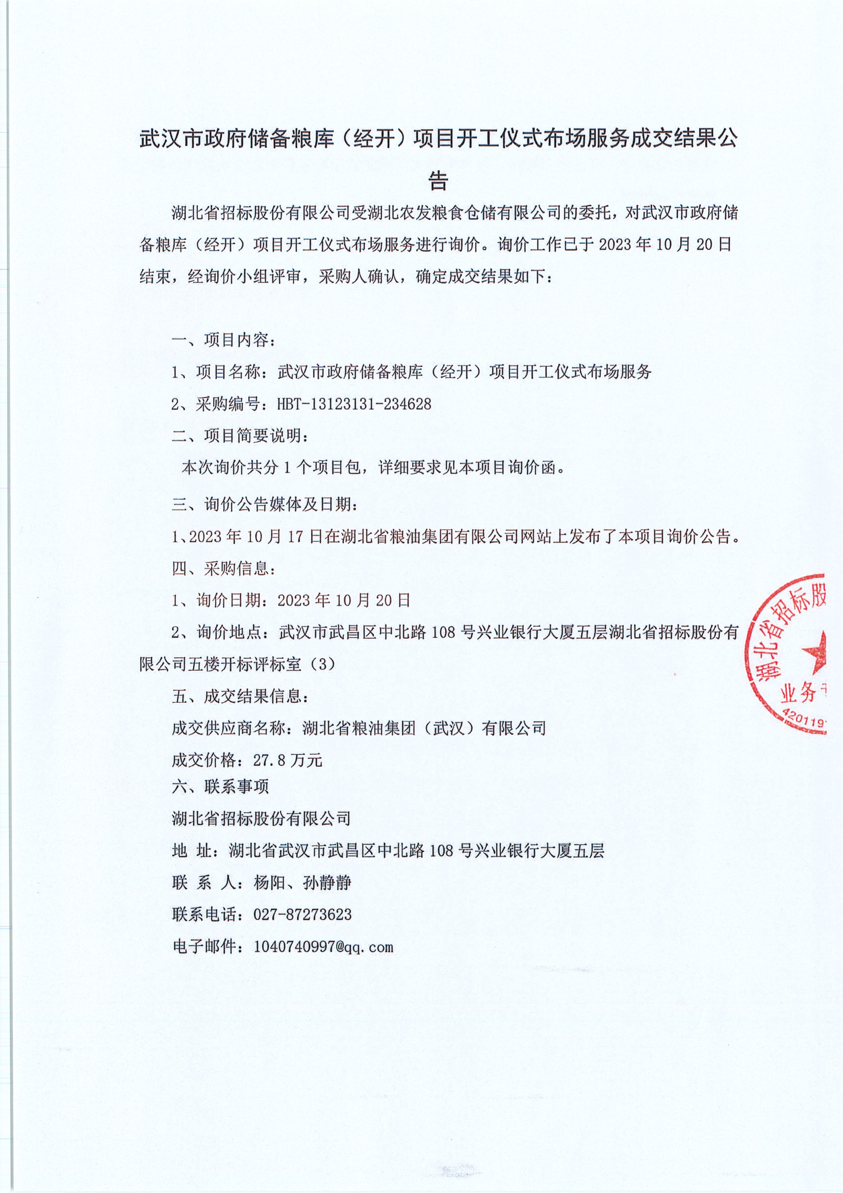 武漢市政府儲(chǔ)備糧庫(經(jīng)開))項(xiàng)目開工儀式布場服務(wù)成交結(jié)果公告