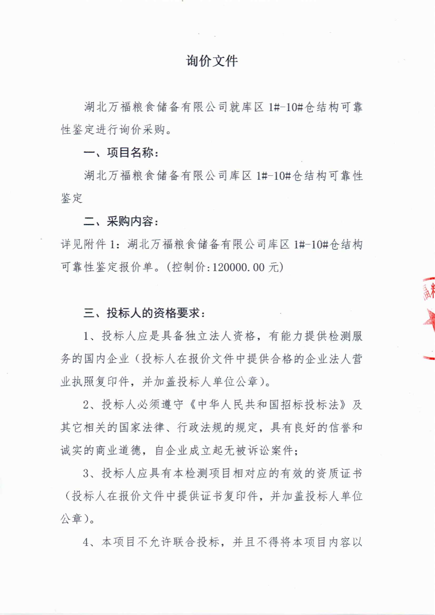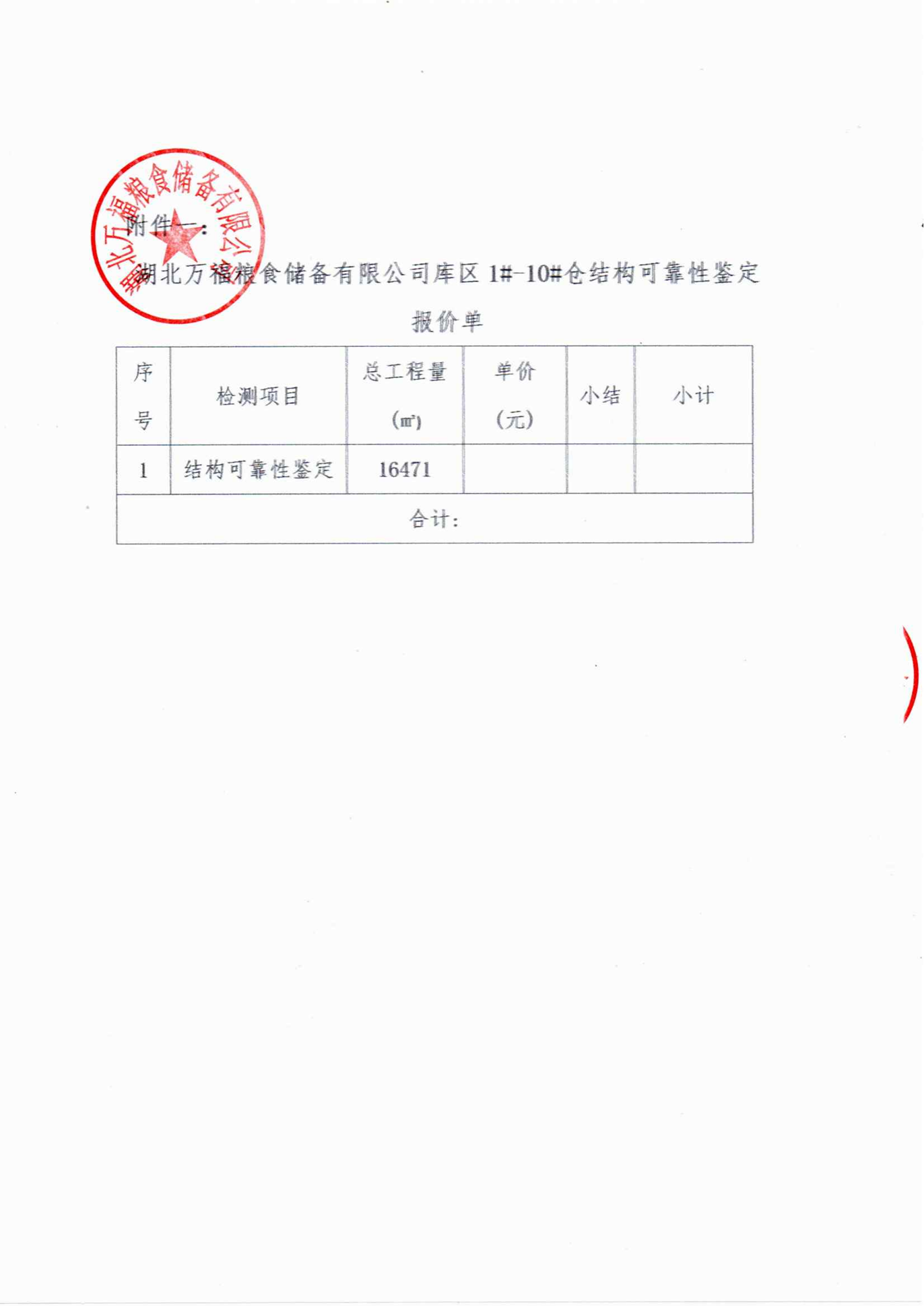 湖北萬(wàn)福糧食儲(chǔ)備有限公司庫(kù)區(qū)1#-10#倉(cāng)結(jié)構(gòu)可靠性鑒定詢價(jià)文件
