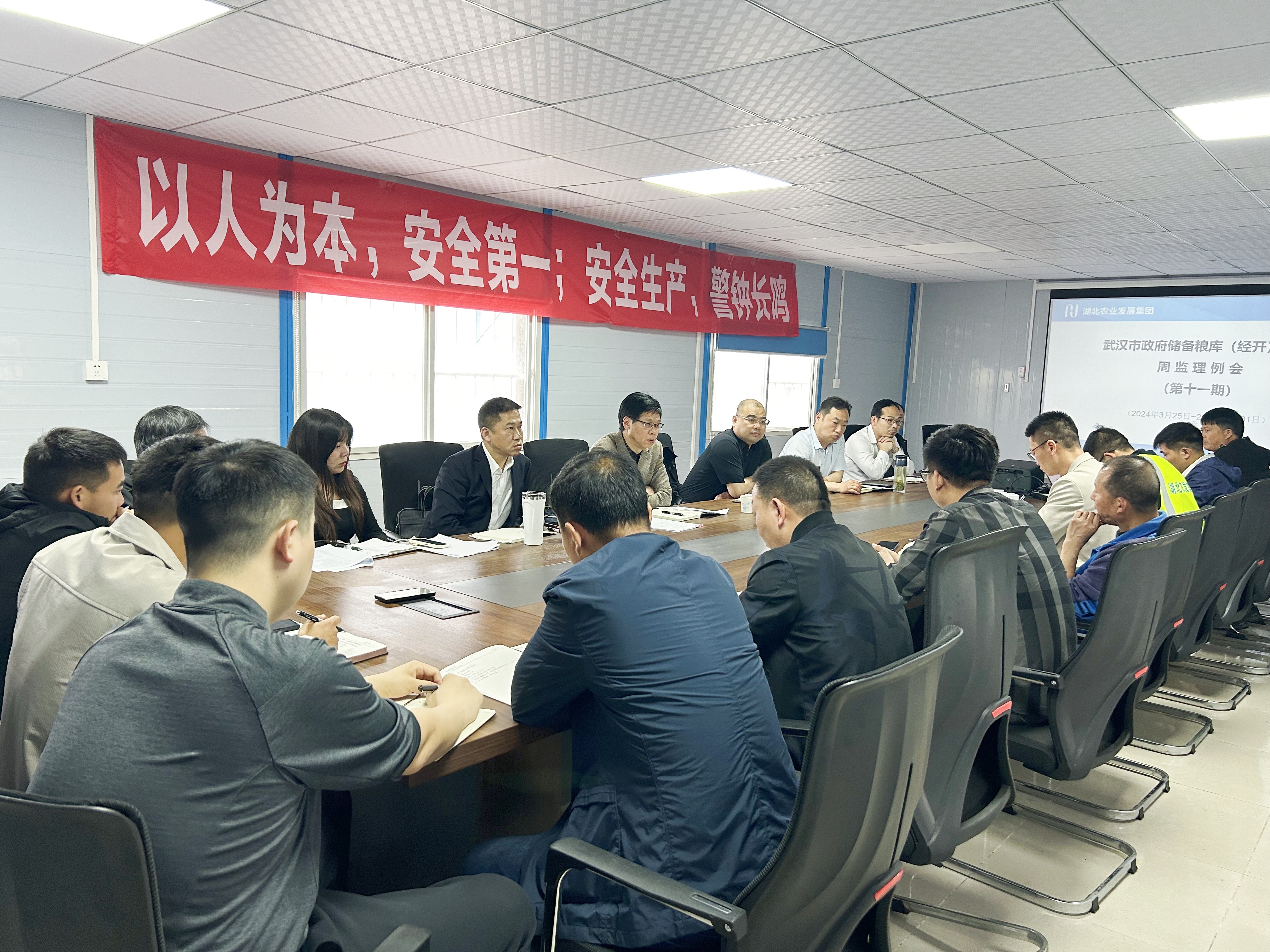 4月2日,湖北省糧油集團黨委副書記、紀委書記姜志榮、湖北農發實業集團黨委委員、副總經理王繼軍一行赴湖北農發糧食倉儲公司調研武漢市糧食儲備庫(經開)項目,并就項目建設推進事宜與監理單位、施工單位座談交流。