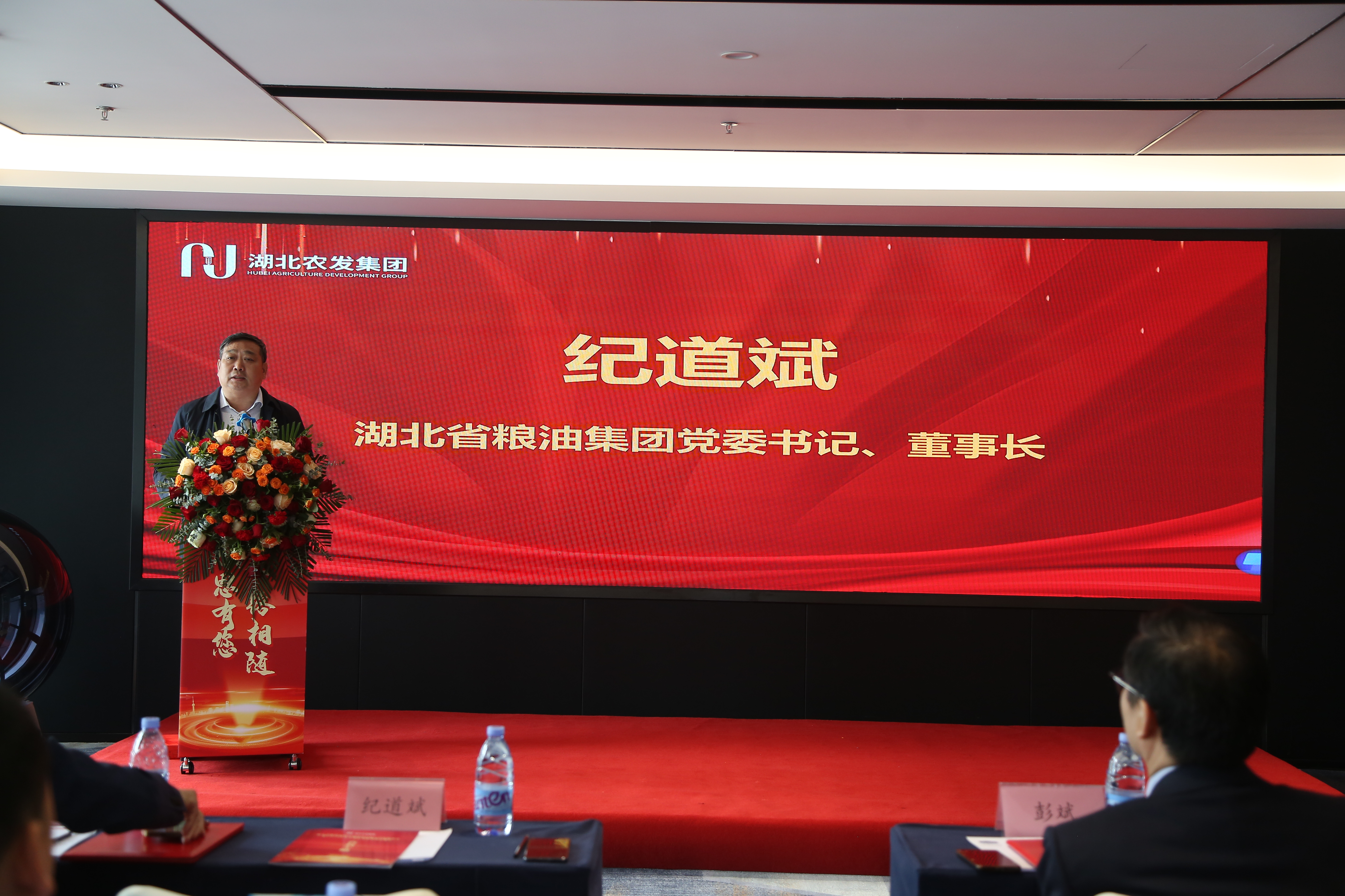 紀道斌在致辭中指出,湖北省糧油集團中南商貿有限公司的成立是湖北省糧油集團深入實施國際化戰略、全面融入國內國際雙循環工作的重要里程碑。希望中南商貿公司心系“國之大者”,深耕國際國內市場,勇擔“服務國家戰略、服務集團發展、服務客戶增值、服務企業轉型”的重任,以拼搏為舟、奮斗作槳,為農產品貿易架起新橋梁、搭建新平臺、創造新價值,奮力打造華中地區領先的農產品國際貿易綜合服務商。