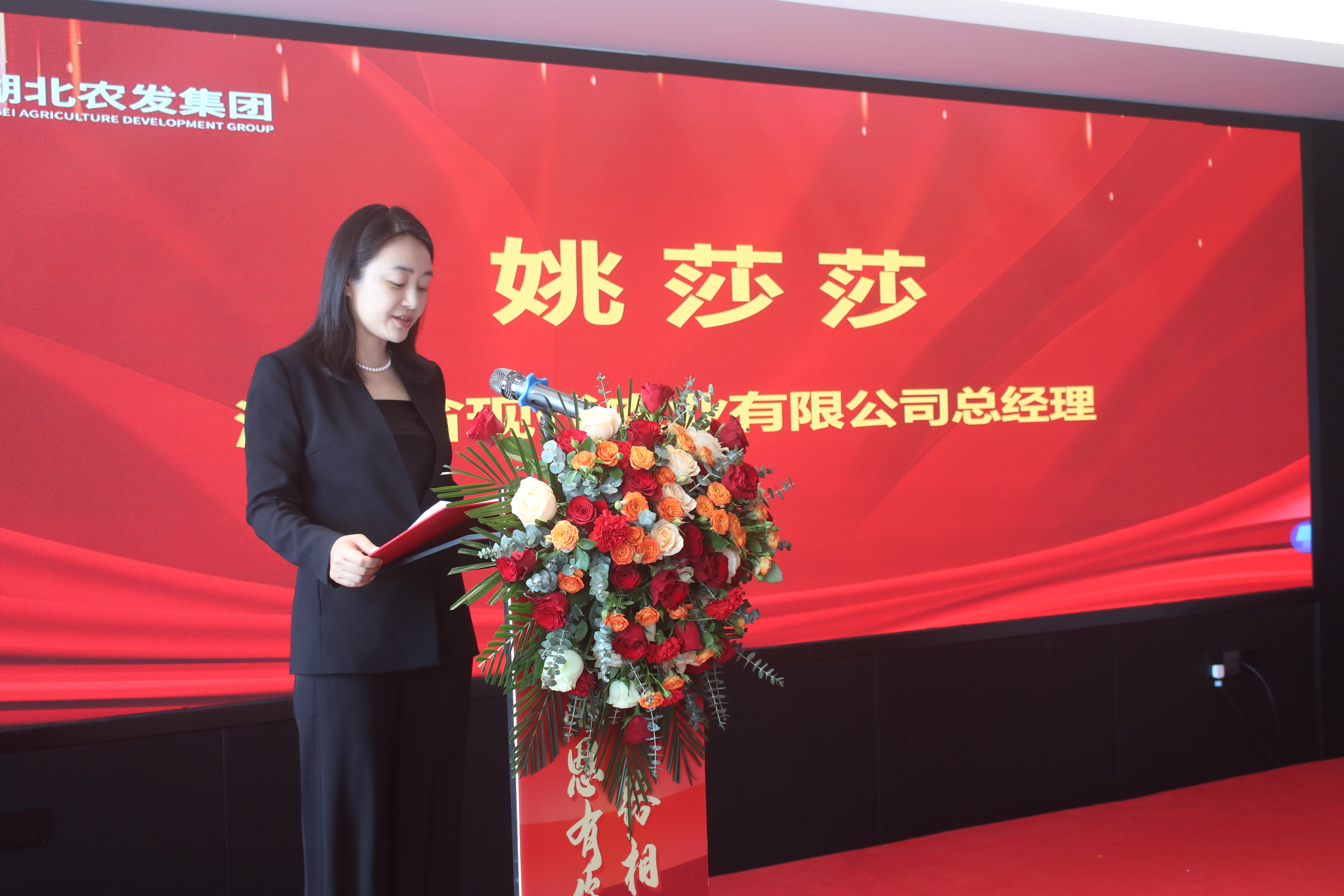 湖北省現代農業有限公司總經理姚莎莎在致辭中對長期關心支持現代農業公司改革發展的各級領導、合作伙伴表示感謝。她表示,此次中南商貿公司成立是標志著現代農業公司走出湖北,面向全國,擁抱世界戰略邁出了關鍵性的一步,中南商貿公司將充分發揮資金、技術、地域、人才優勢,穩妥推進全產業鏈發展路徑,為促進農業產業化加快發展貢獻力量。