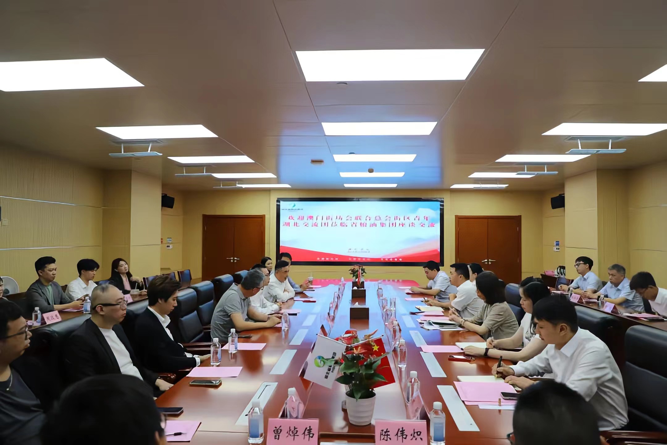 為進一步加強本澳青年對國家發展情況的了解,6月18日,在湖北省人民政府港澳事務辦公室港澳處副處長胡偉陪同下,澳門街坊會聯合總會街區青年湖北交流團赴湖北省糧油集團考察交流。集團黨委委員、副總經理王林奎,黨委委員、總會計師趙秀峰會見代表團一行。