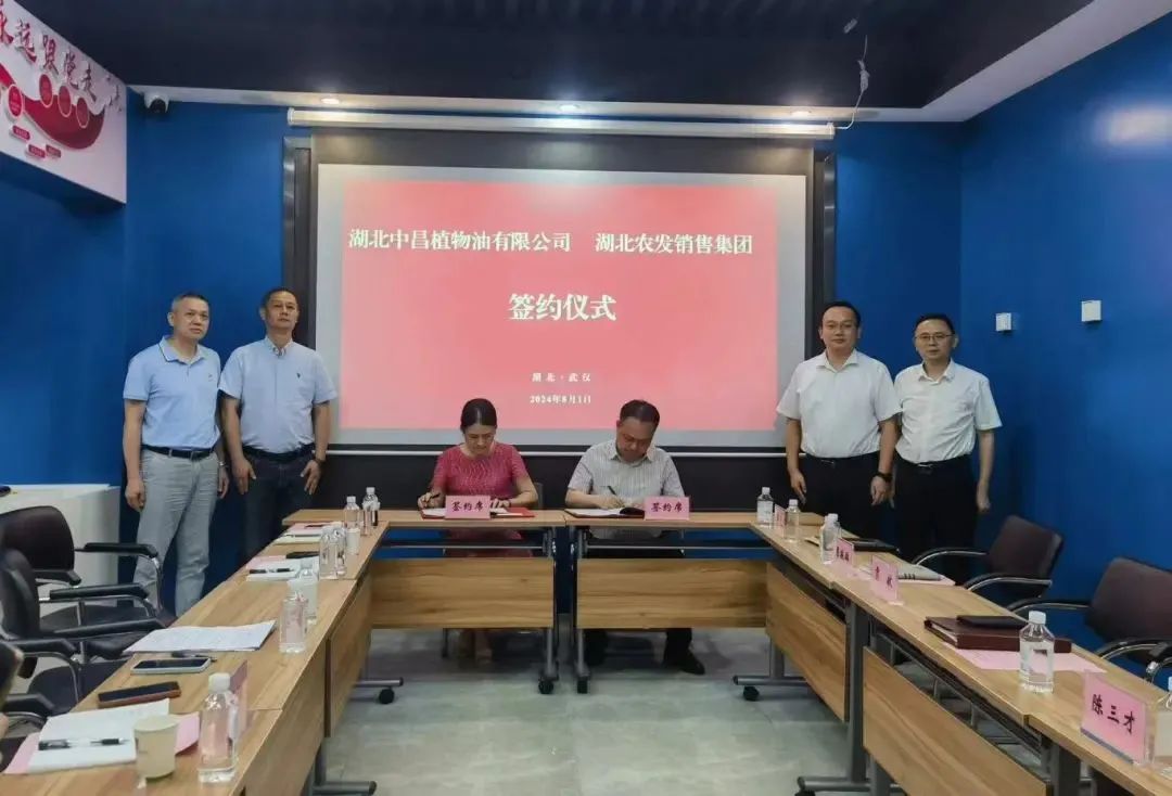 8月1日,湖北中昌植物油有限公司與湖北農發銷售集團聯合開展“品牌共建、渠道共享、業務共融”主題座談并現場簽約。湖北農發銷售集團董事長貢獻、執行總經理陳三才,中昌公司常務副總經理陳茂星參加活動。