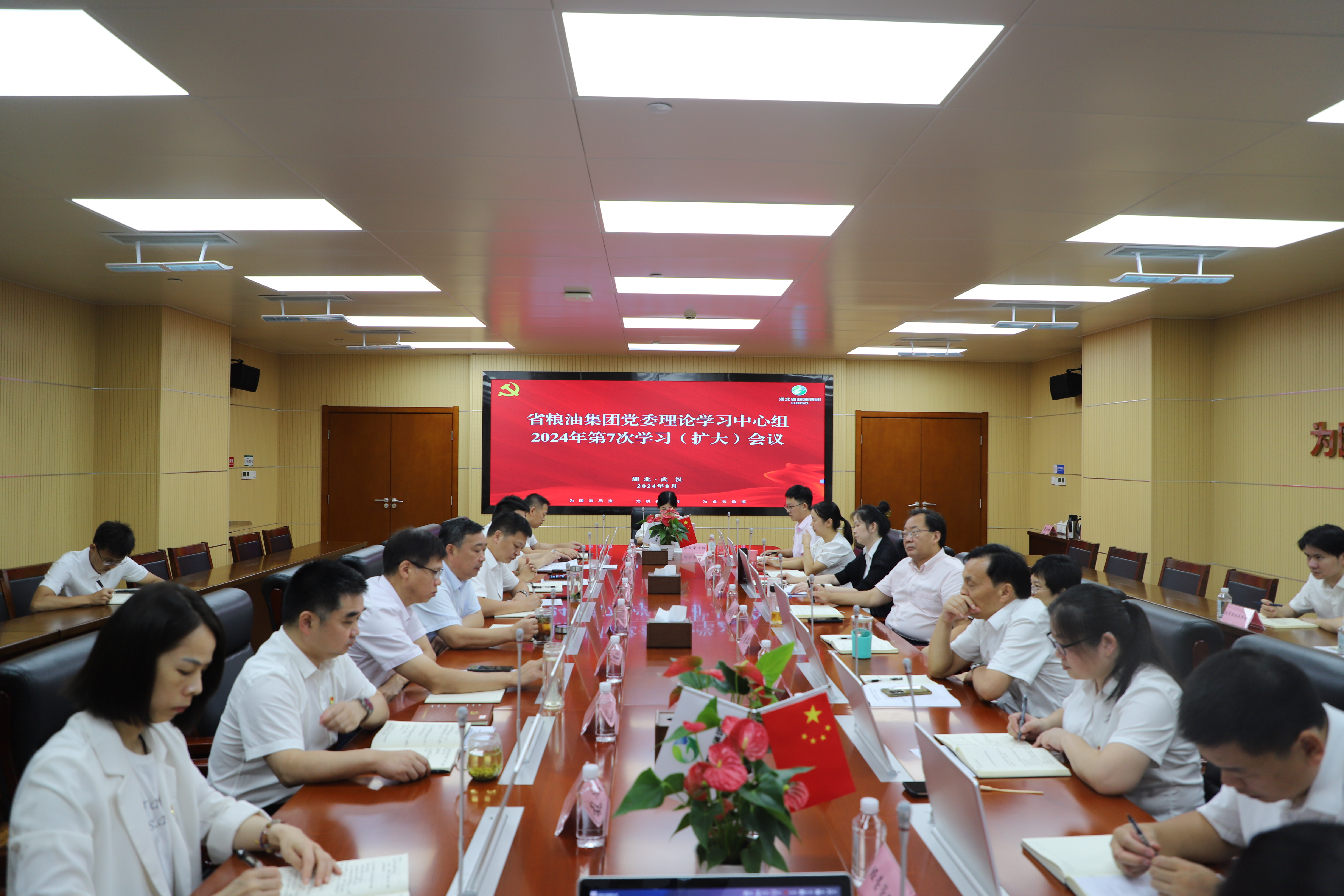 8月26日,湖北省糧油集團黨委理論學習中心組舉行2024年第7次集中學習,學習貫徹黨的二十屆三中全會精神,傳達學習省委十二屆七次全體會議精神。集團黨委書記、董事長紀道斌主持學習,集團黨委班子成員參加學習,本部各部室負責人列席。
