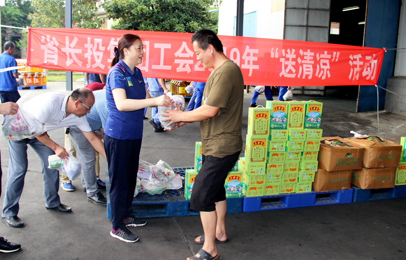 龐立同志一行為一線奮戰員工送上西瓜、涼茶、綠豆等防暑降溫物品,與員工親切交談,叮囑大家做好防暑降溫工,鼓勵員工繼續發揚工人階級優秀品質,為企業發展多作貢獻。