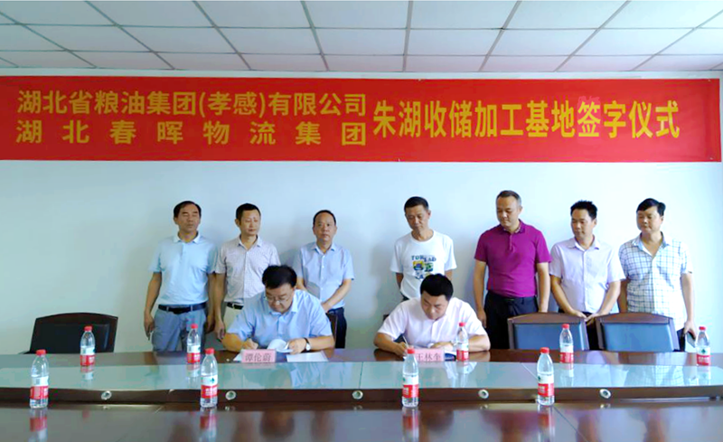 為加強國企與民企合作,謀劃產業區域布局,8月30日上午,湖北省糧油集團(孝感)有限公司與湖北春暉物流集團簽訂租賃朱湖收儲加工基地合同。湖北省糧油集團總農藝師兼孝感公司副董事長、總經理王林奎與湖北春暉物流集團董事長譚倫慰代表雙方簽約。