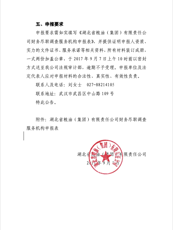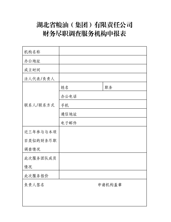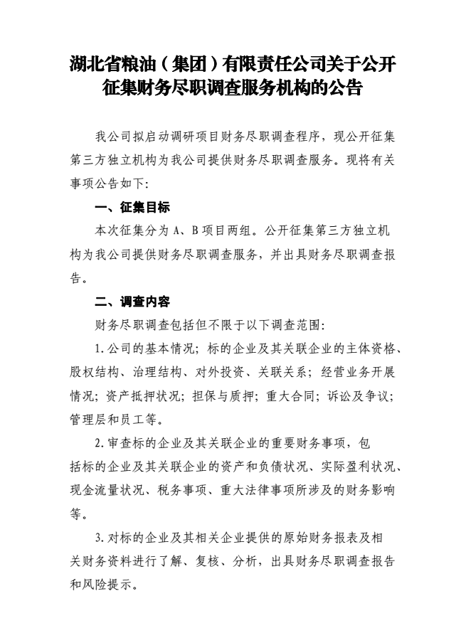 湖北省糧油(集團)有限責任公司關(guān)于公開征集財務(wù)盡職調(diào)查服務(wù)機構(gòu)的公告