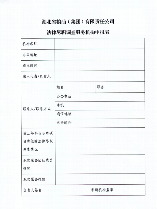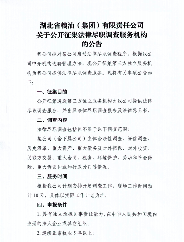 關于公開征集法律盡職調查服務機構的公告
