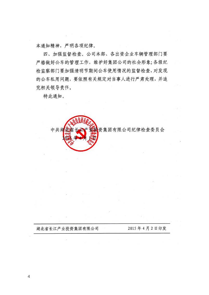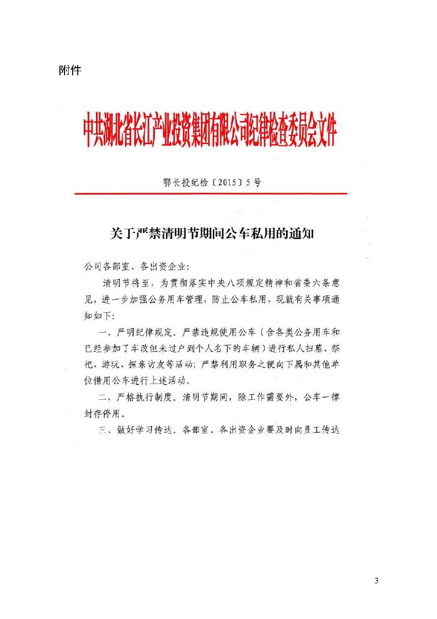 湖北省糧油集團關于進一步加強2015年清明節期間領導干部廉潔自律工作的通知